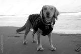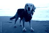 A young cocker spaniel plays on the beach
