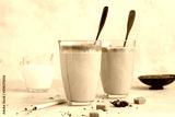 Tasty fresh iced coffee, Dalgona coffee. Trend Korean drink with instant coffee in glass on light grey table.