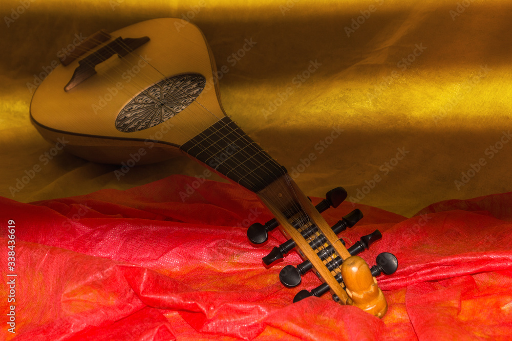 Musical still life with medieval gittern..