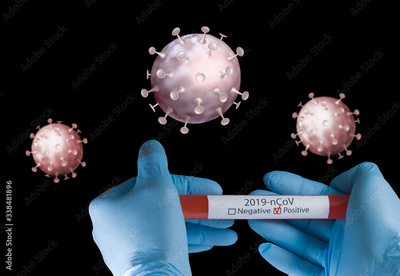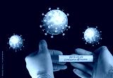 Image of test tube with coronavirus test in gloved hands