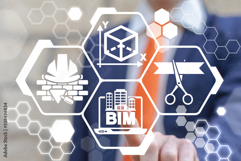BIM Building Information Modeling Concept. Architecture Construction Build Software Developing Complexity Technology.