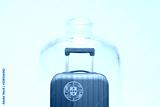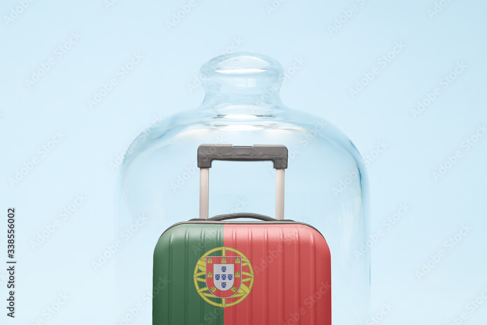 Luggage in isolation under glass cover covid-19 Portuguese tourism abstract.