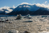 Landscape with glacier in Svalbard at summer time. Sunny weather.