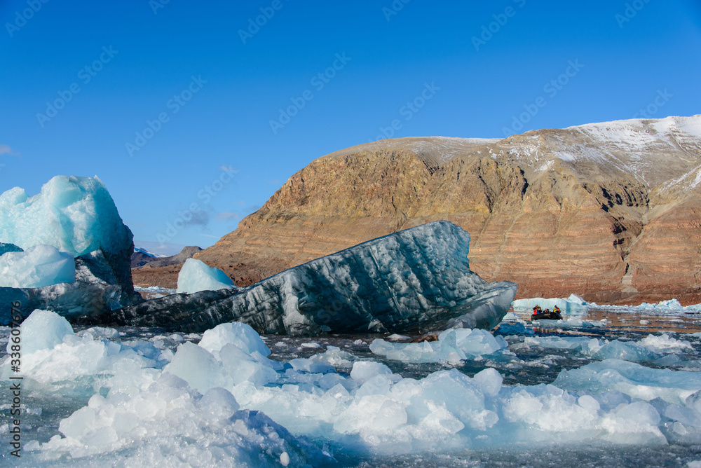 Landscape with glacier in Svalbard at summer time. Sunny weather.