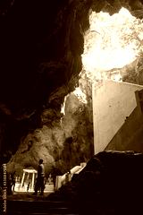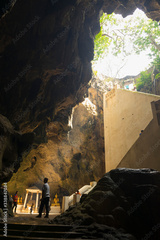 The golden Buddha inside Khao Luang Cave in Phetchaburi,Thailand