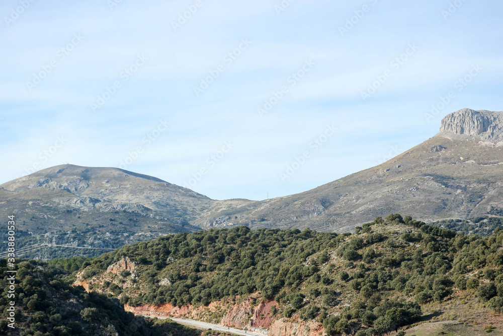 view to the mountains at the sunset