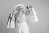 Spring shopping concept: happy smiling fashionable woman wearing trendy clothes posing with colorful paper bags. Pink background. Copy, empty space for text