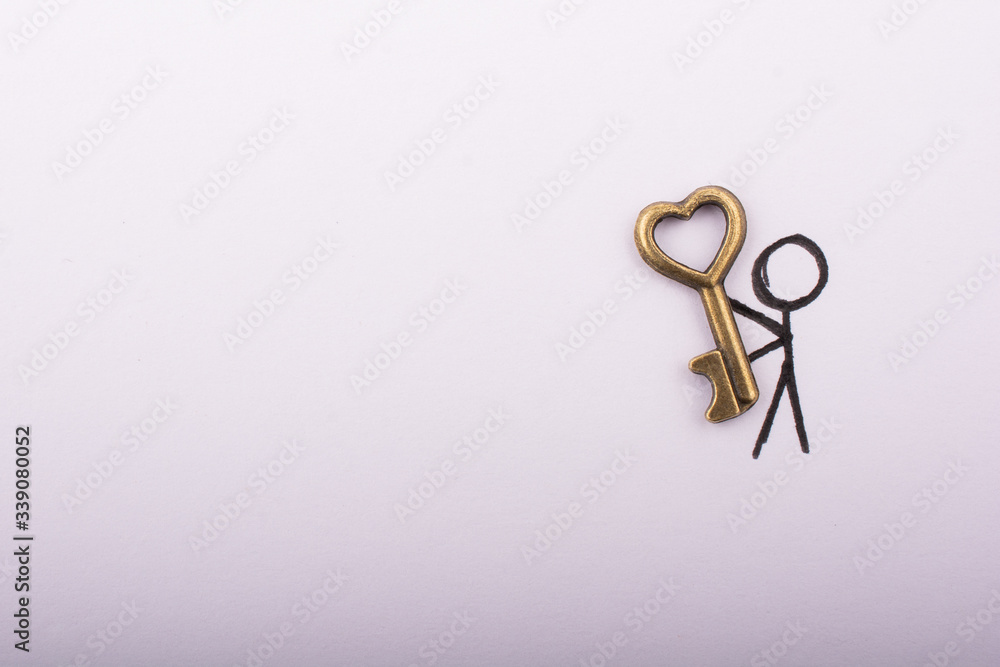 Man carrying a retro style heart shaped key as love concept