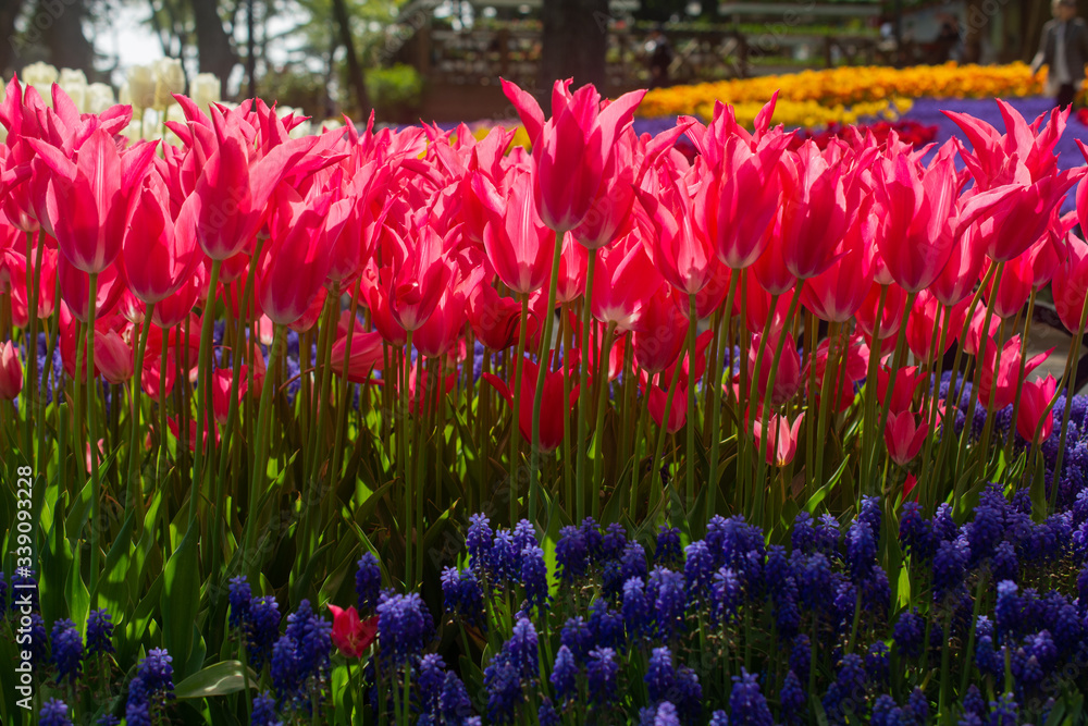Blooming tulip flowers in spring as floral background
