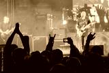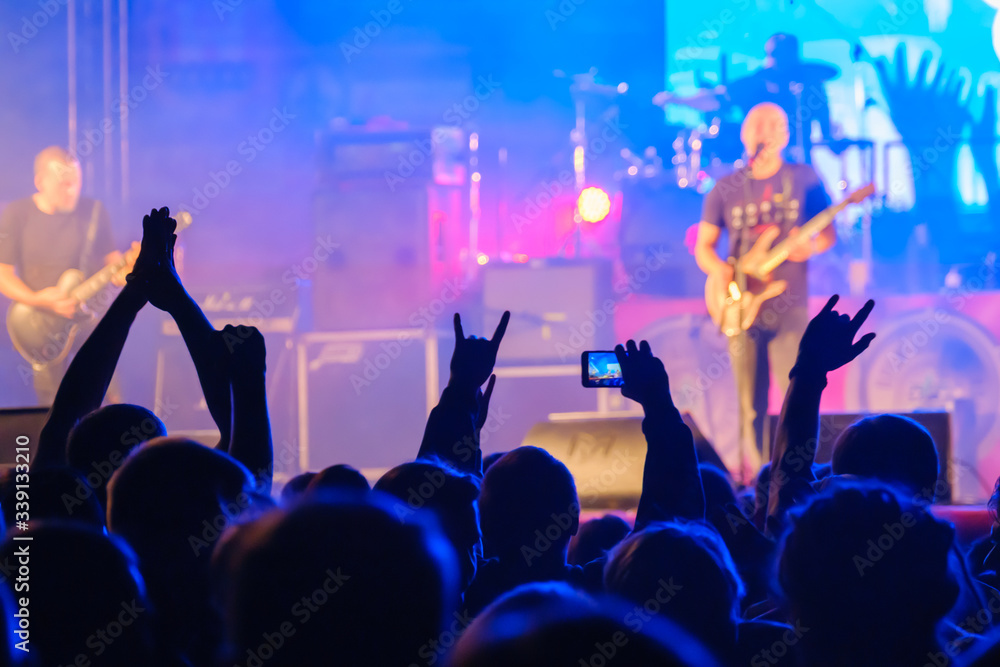 Fans listening to rock band on stage