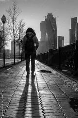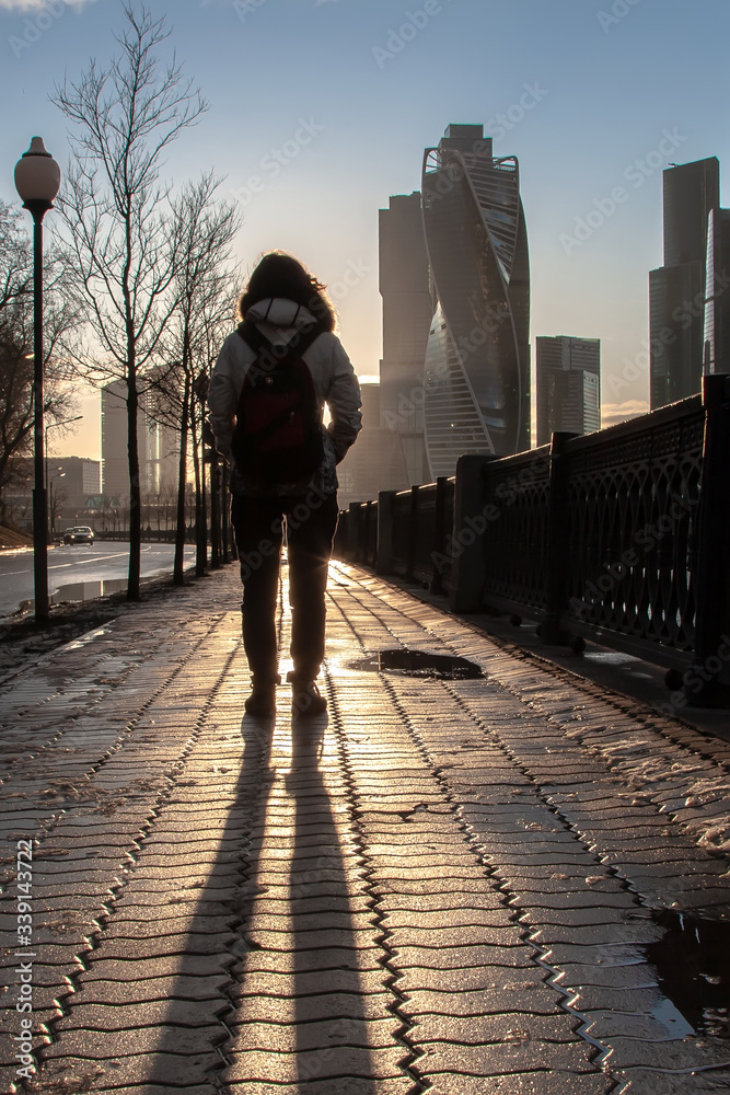 Girl on the embankment of the river. Moscow/Russian Federation/07.03.2020