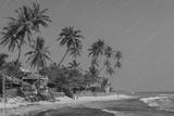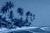 Palm trees on the shore of the Indian Ocean on the beach in Hikkaduwa, Sri Lanka.