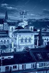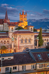 City of Lausanne. Cityscape image of downtown Lausanne, Switzerland during twilight blue hour.