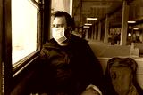 Coronavirus, covid 2019, young man with respiratory mask traveling in the public transport by ferry