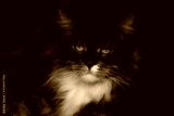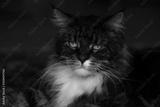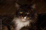 Grimmiger Main Coon Kater schaut frontal in die Kamera