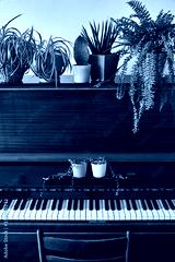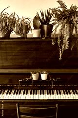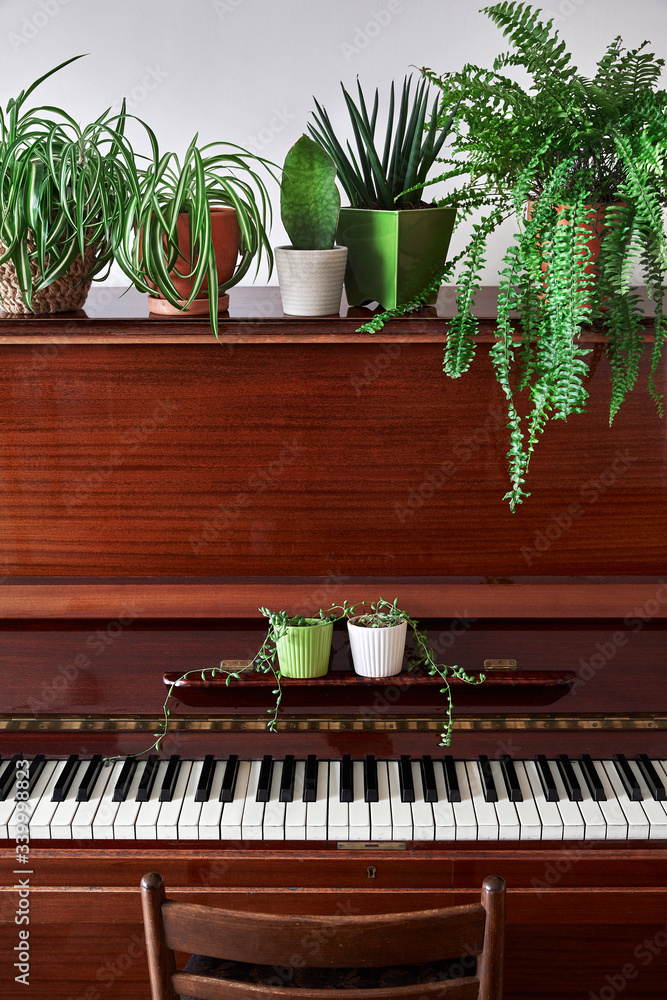 Old piano with plants in the pot