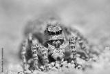 Jumping spider, Lovely big eyes jumping spider hunting on the ground