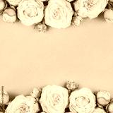 Spring background. Rose flowers on a beige background. Flat lay. Copy space for your text.