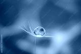 Beautiful water drop on a dandelion flower seed macro in nature. Beautiful deep saturated blue and turquoise background, free space for text.