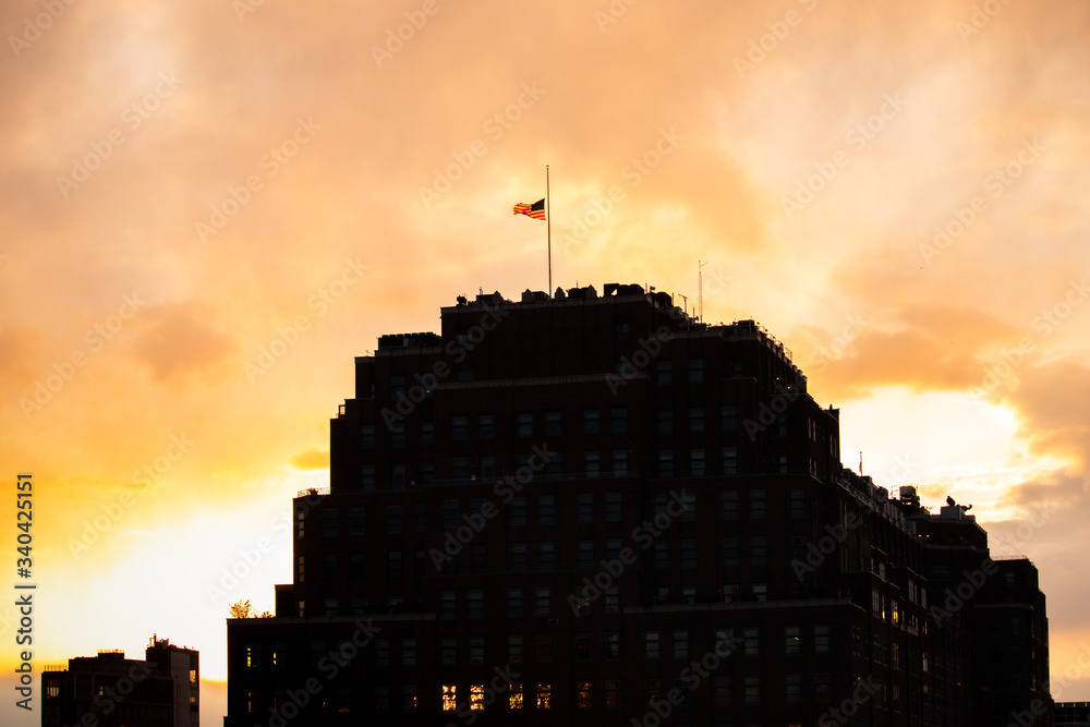 Sunset lights up the american flag on April 2020, caught from my window #stayhome