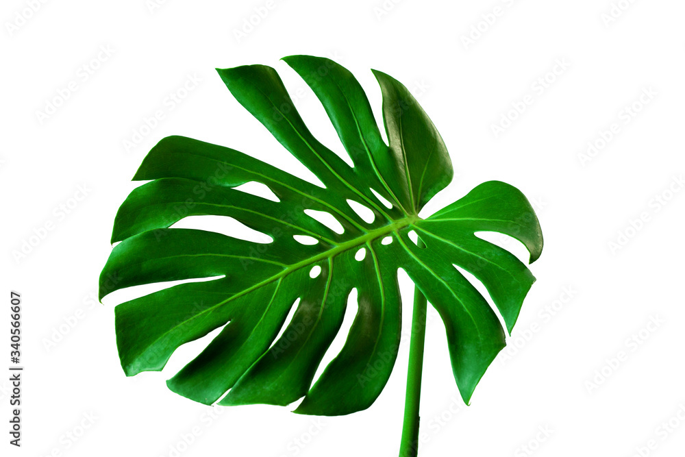 Beautiful Tropical Monstera leaf isolated on white background for design elements, Flat lay