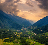 Aerial view of the San Bernardino mountain pass in the Swiss Alps, Switzerland