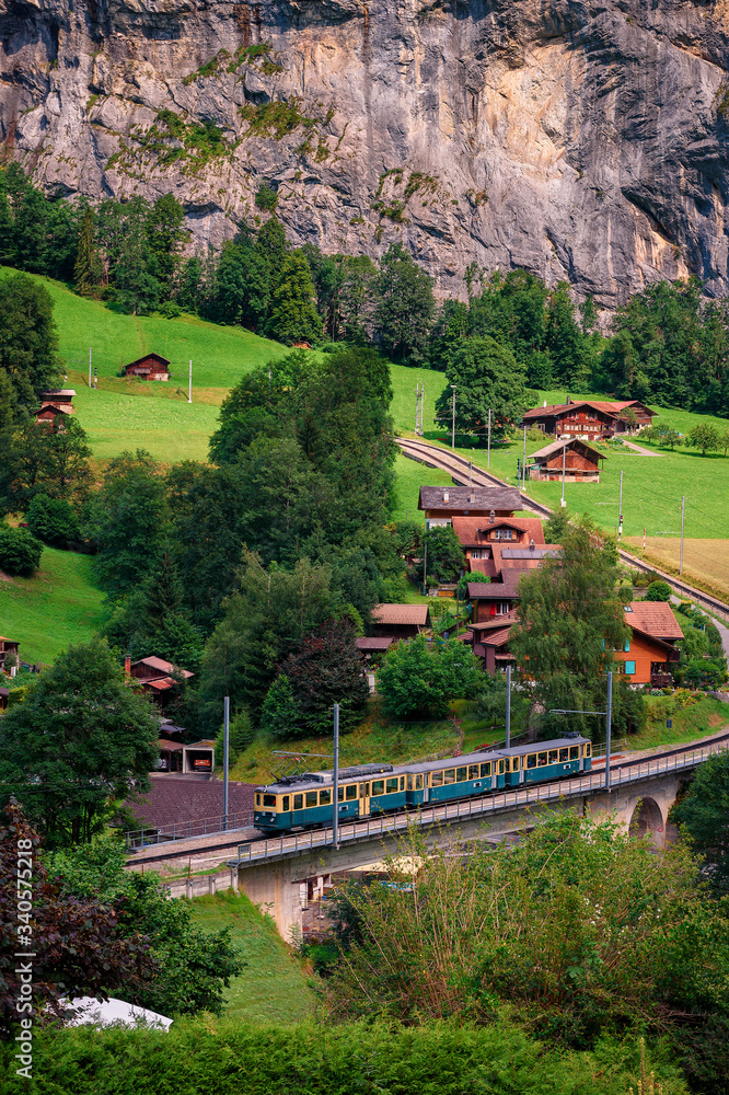 Vintage train in the Lauterbrunnen valley, Switzerland