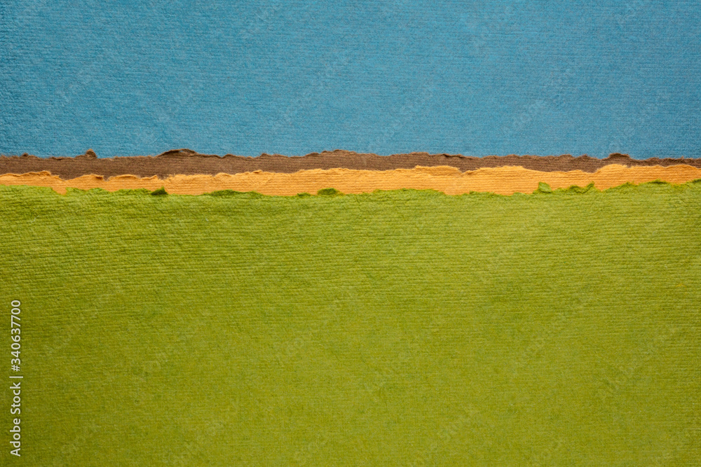 blue sky and green fields abstract landscape created with handmade Indian paper