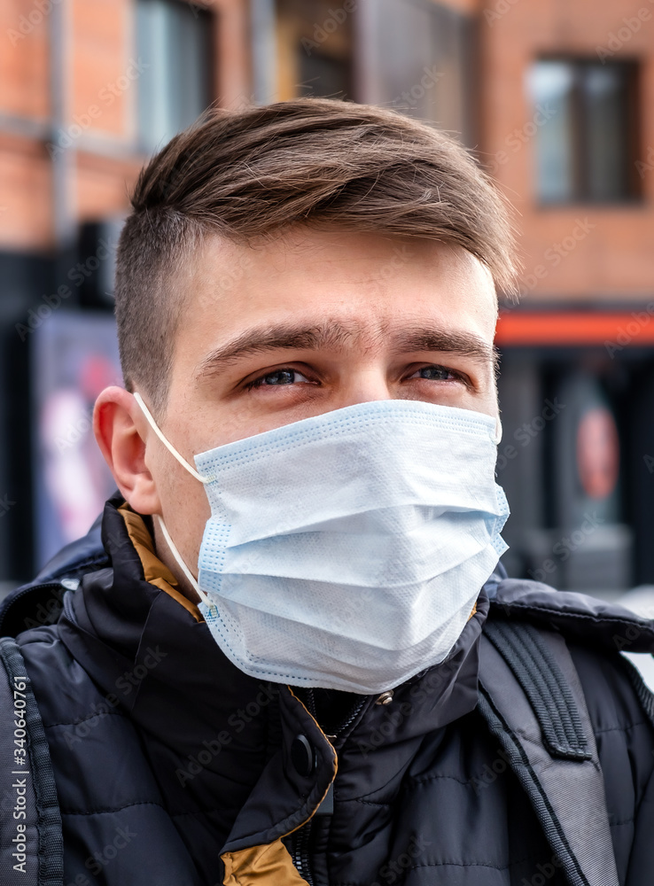 Young Man in Flu Mask