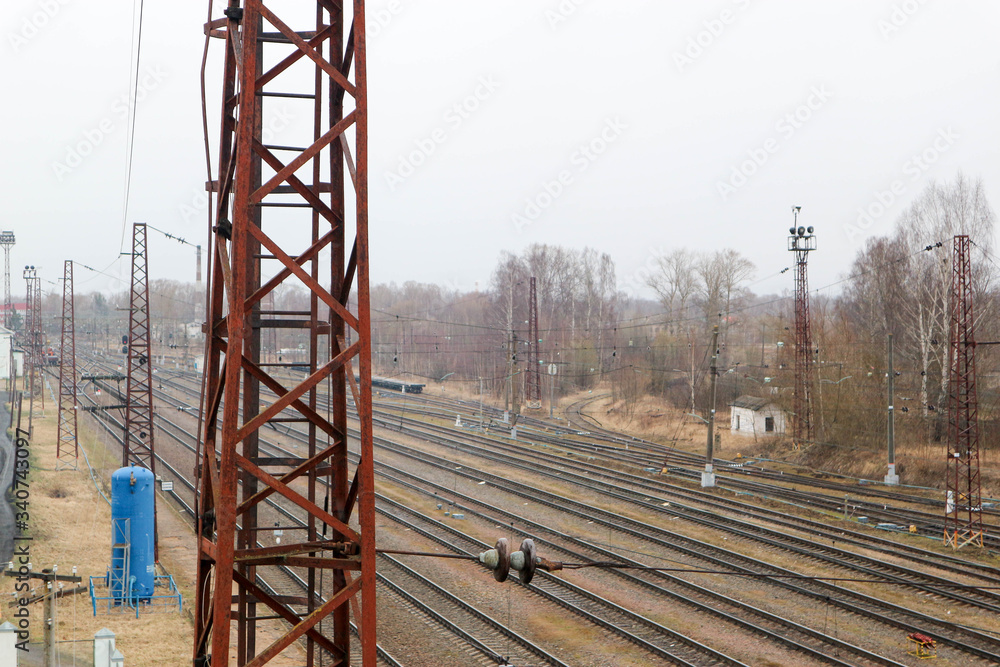 Spring view of big railway station in Russia