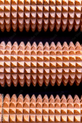 Fragment of wooden roller massager for the back and whole body on for relaxing massage