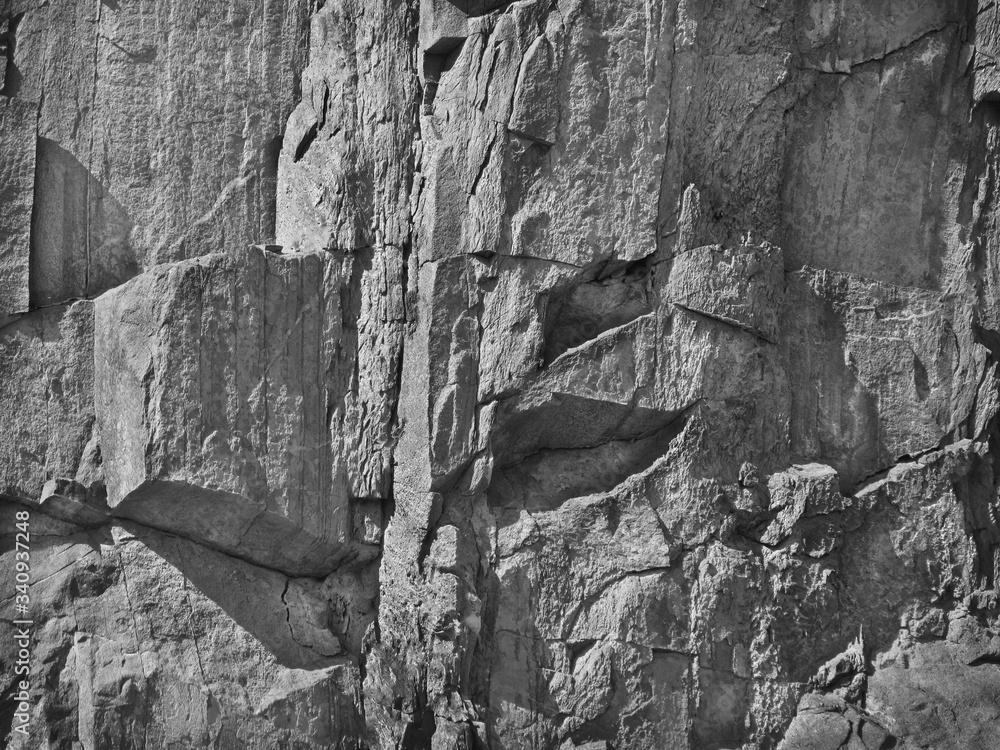 White grunge background with rock texture. Gray stone background. The surface of the mountain. Monochrome. Close-up. Fantastic rock image.