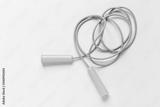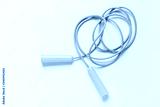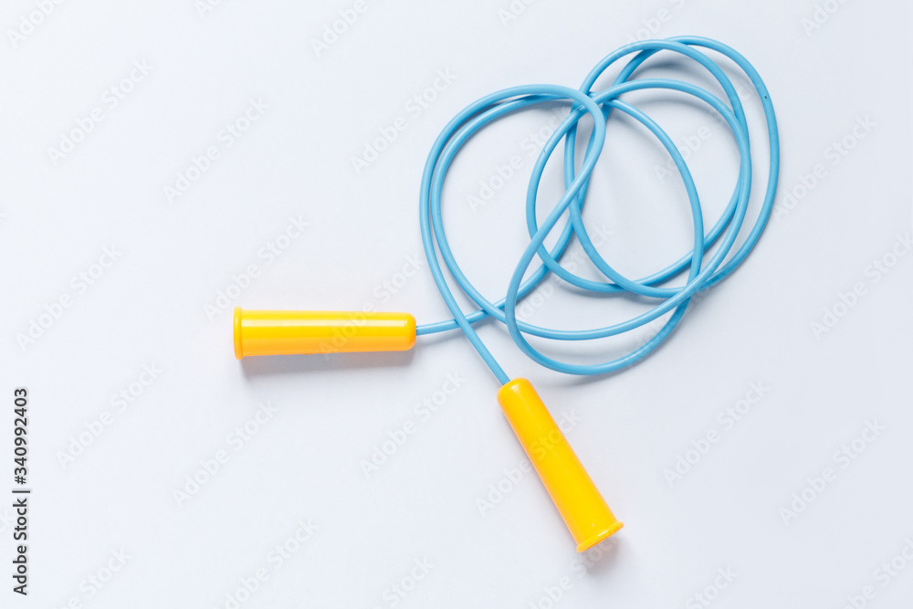 sports composition. jump rope blue with yellow handles on a blue background with a place to write