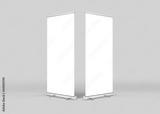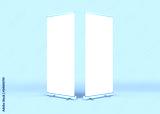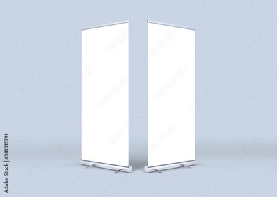 Rollup banners stand. Blank template mockups. Exhibition stand roll-up banners, isolated screen for you design. Vertical empty white roll up for print.