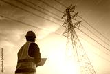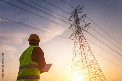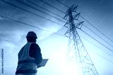 Asian Manager Engineering in standard safety uniform working inspect the electricity high voltage pole.