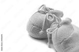 Blue baby booties isolated over white background with copyspace