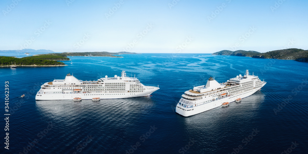 Panoramic landscape with cruise liner on Adriatic sea. Luxury cruise. Croatia. Aerial view at the cruise ship at the day time. Adventure and travel. Travel - image
