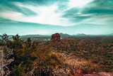 Skała, Góra Sigirya Lion Rock, na tle nieba i krajobrazu zieleni.
