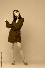 Fashion model in magenta dress.