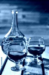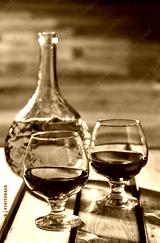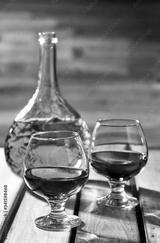 Old cognac snifters and bottle