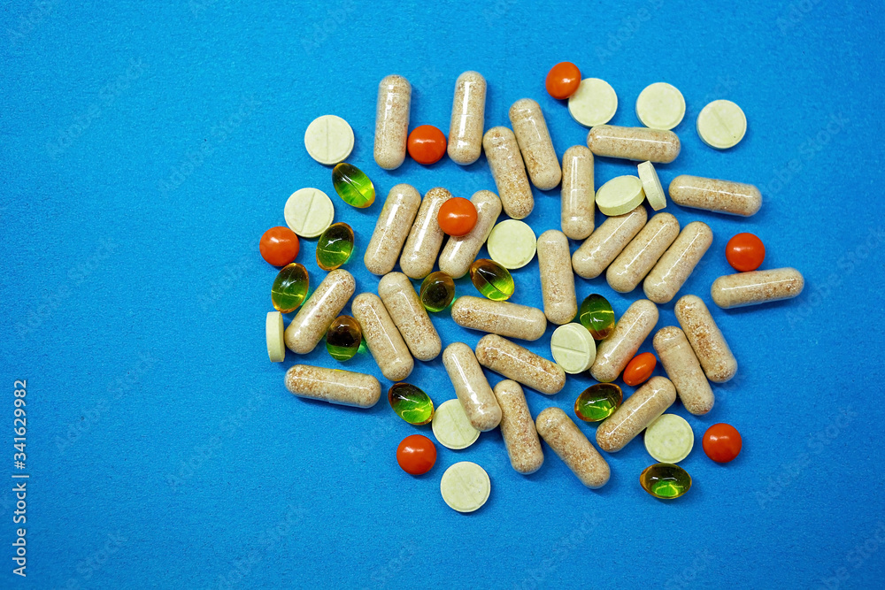 tablets medical medications on a plain background