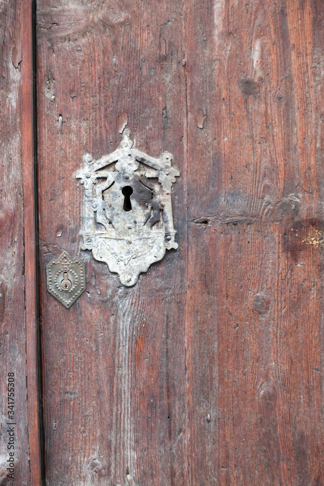 old wooden door with vintage keyhole