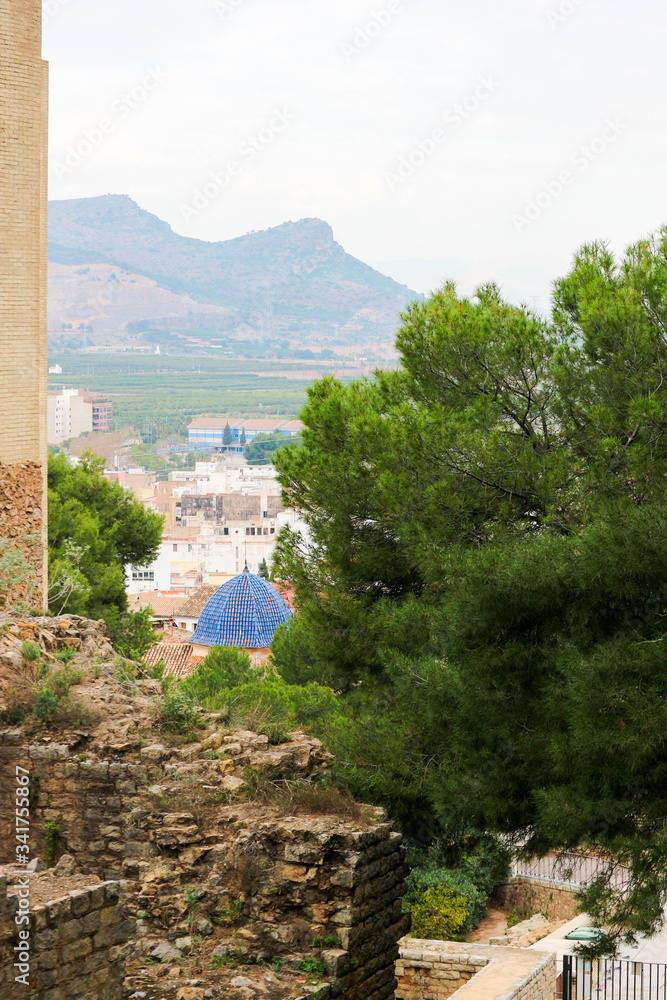 Scenic view to the old town of Sagunto, Spain from path on the castle hill