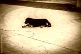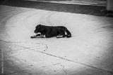 Homeless dogs on the city streets. Animals are looking for food. A stray dog lies on the boulevard. The city of Batumi, Georgia. Local authorities register animals, keep records. Local residents feed