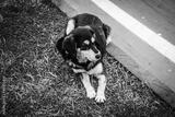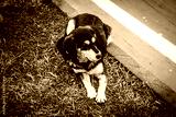 A stray dog lies on the boulevard. The city of Batumi, Georgia. Local authorities register animals, keep records. Local residents feed