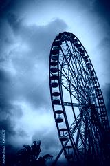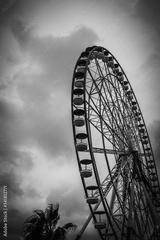 Steel structure of the observation tower in Batumi. Iron pipes create a futuristic image of the structure. Web of metal. View from the bottom up. Day Cloudy.