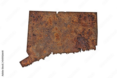 Karte von Connecticut auf rostigem Metall
