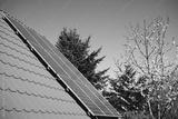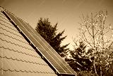 photovoltaic roof panels and fruit tree flowers