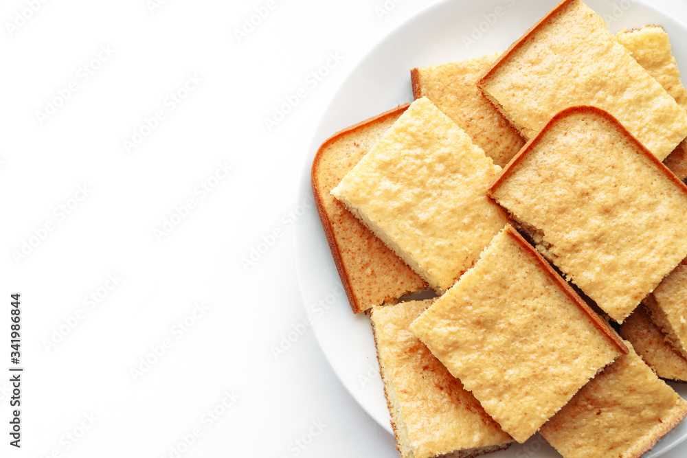 Semolina cake isolated on white background. Copy space