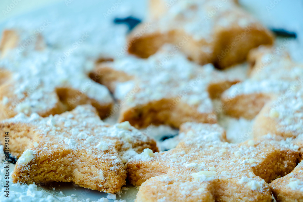 weiße Zuckerkekse mit Puderzucker